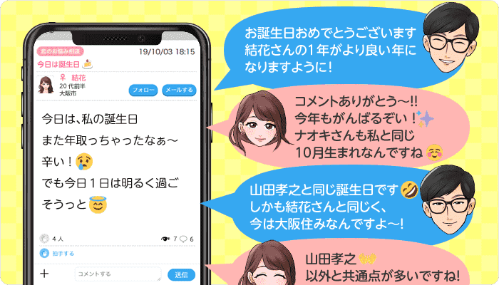 | 安全への取り組み | 男女とも年齢確認必須 異性紹介事業届出済 電気通信事業届出済 ブロック機能 通報機能 24時間365日監視体制 SSLによる通信の暗号化 |